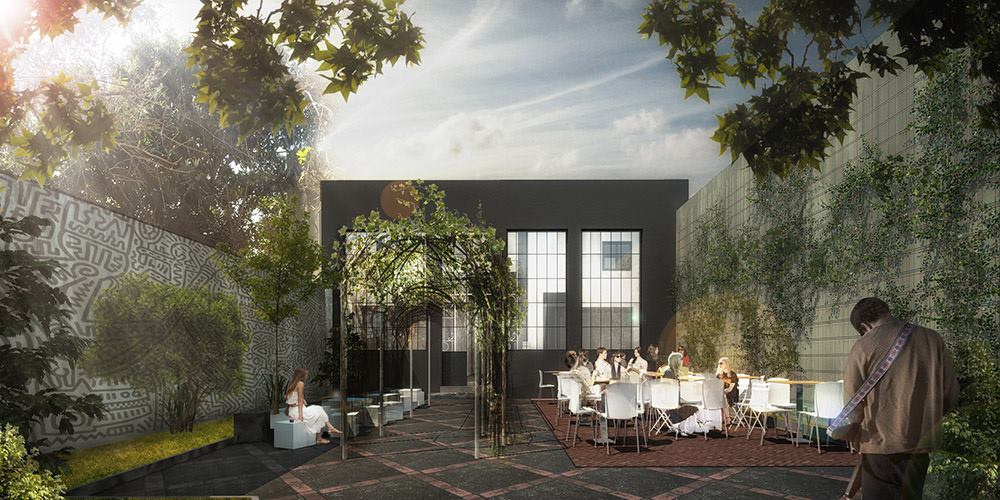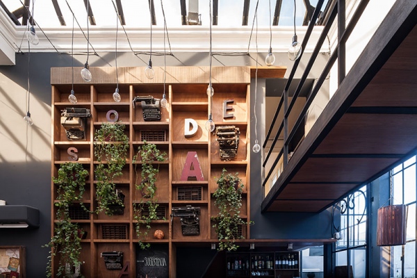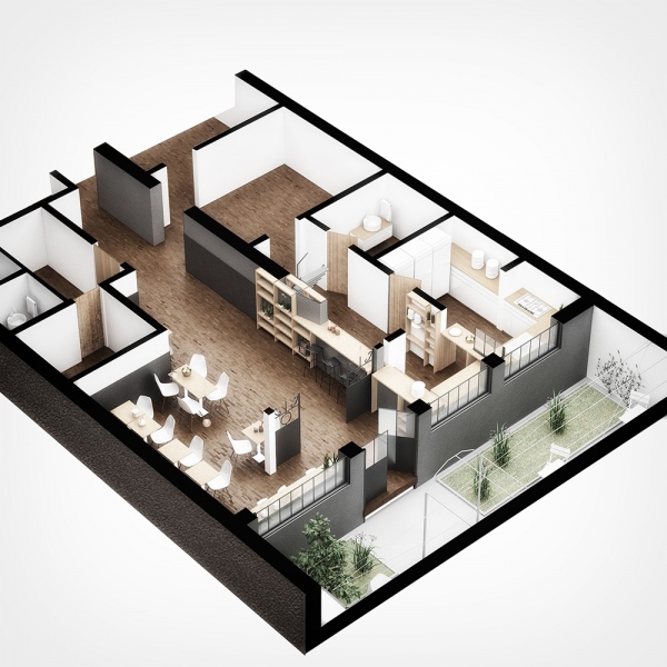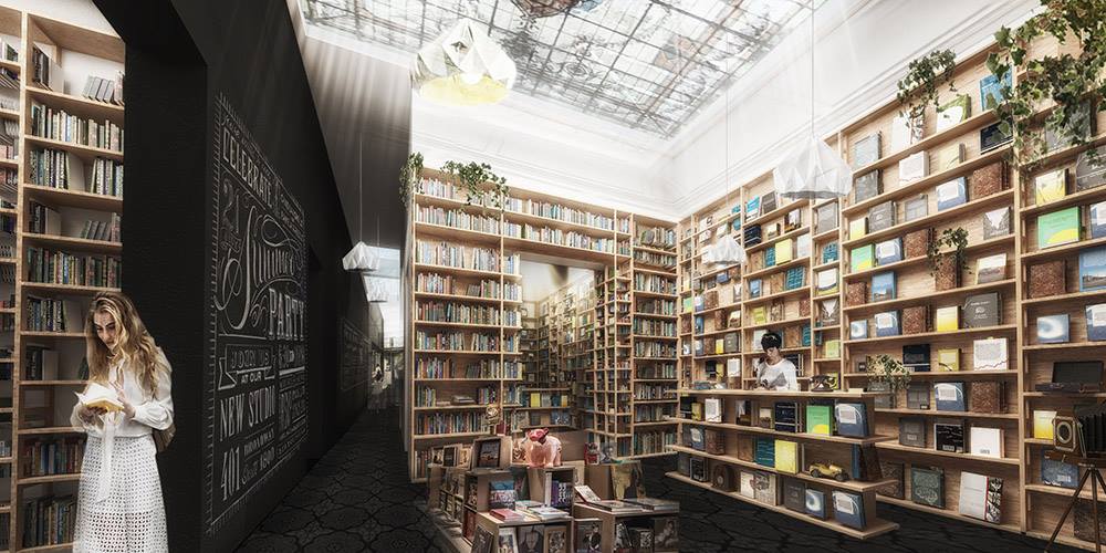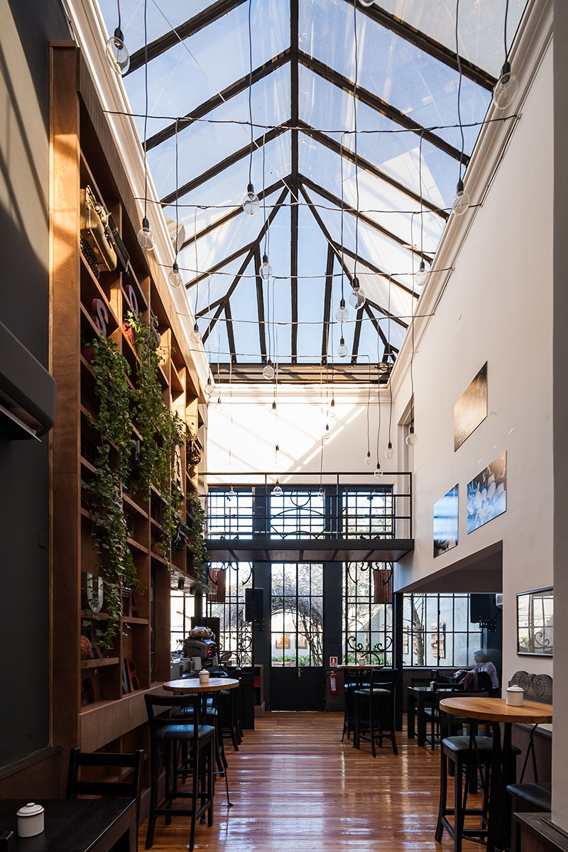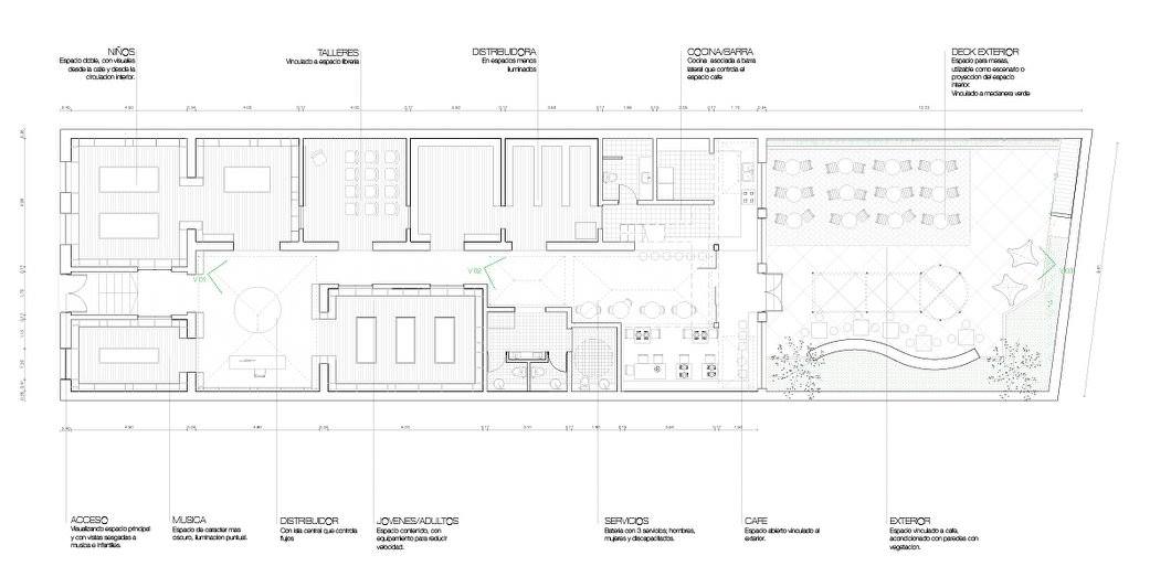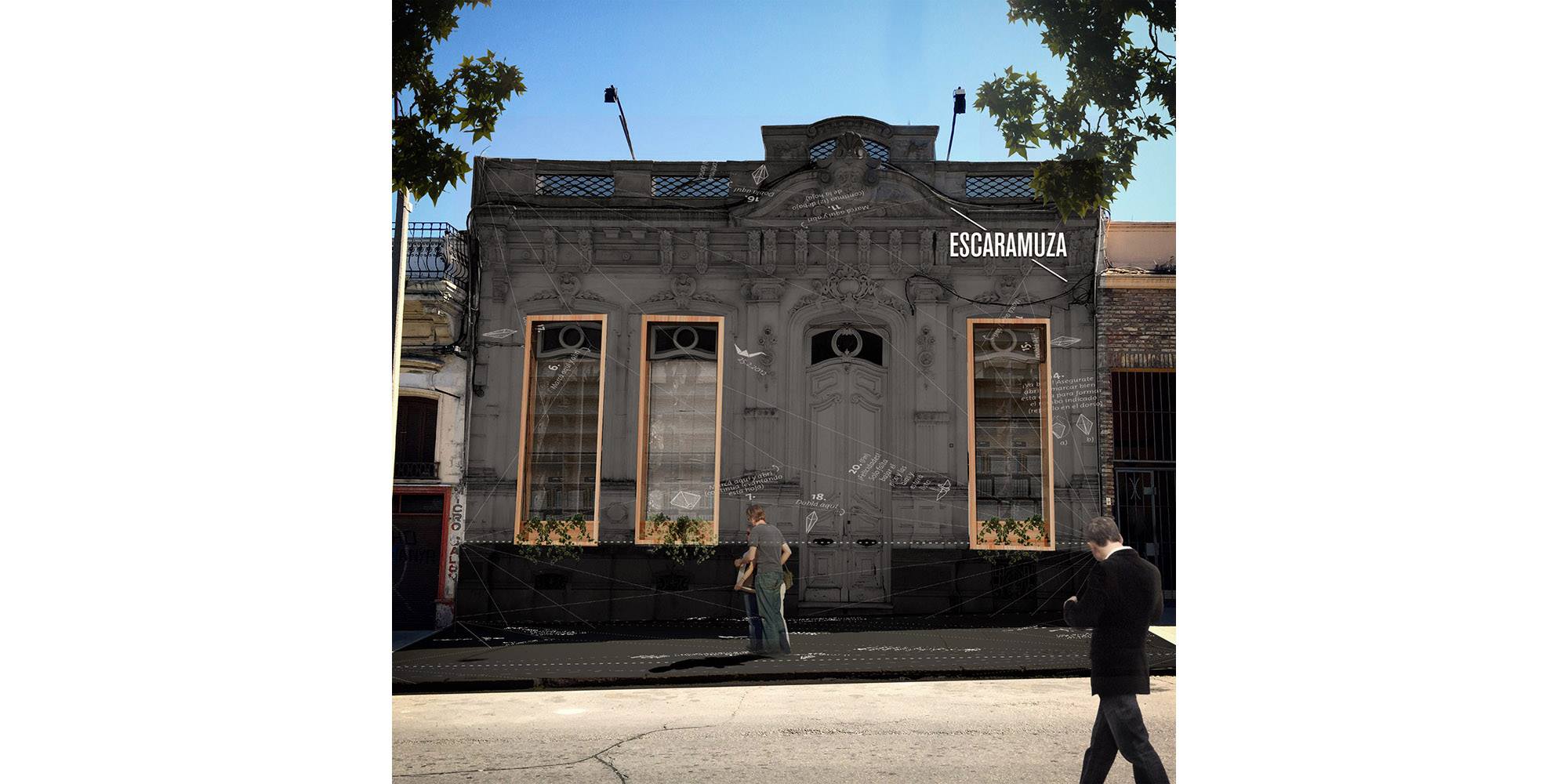 Libreria, Cafe y Distribuidora EscaramuzaParque Rodo390m2ConstruidoEquipo de proyecto: Mateo Vidal, Julia Silva, Arq. Fabrizio Devoto, Arq. Emilio Magnone